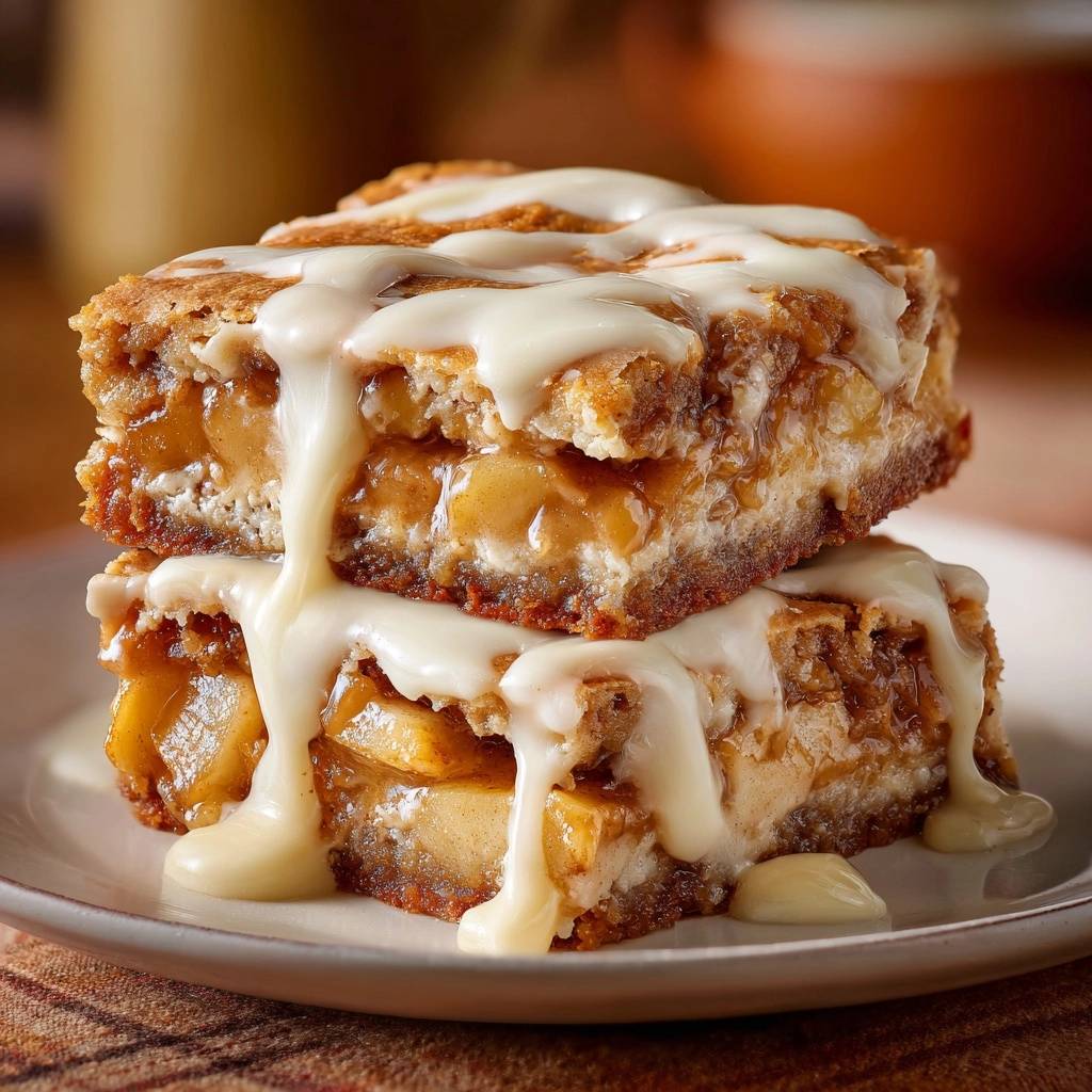 - Make glaze: Whisk powdered sugar, milk, and vanilla until smooth. Drizzle over cooled bars. Cut into squares. Store in airtight container up to 3 days.