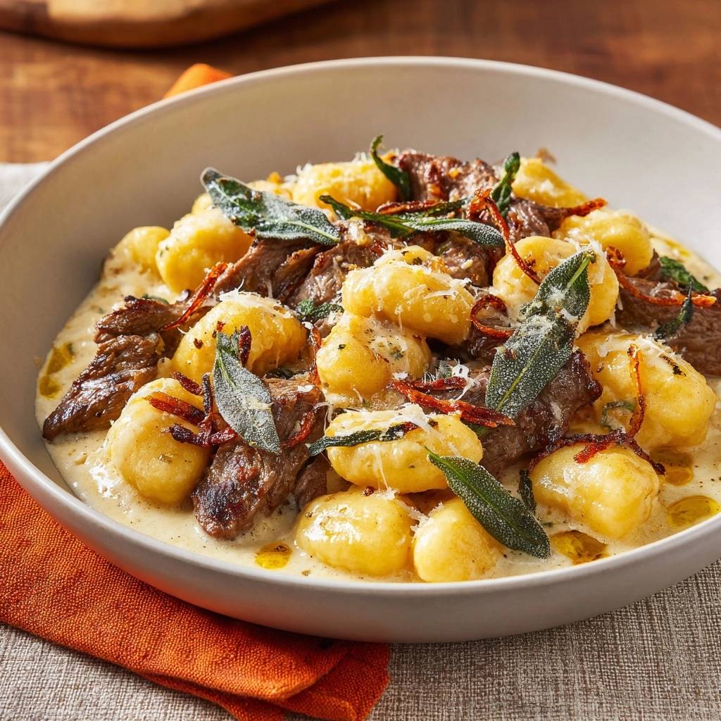Add warm shredded beef to seared gnocchi in skillet. Toss gently over low heat 1 minute, wilting remaining sage leaves. The sauce clings perfectly.