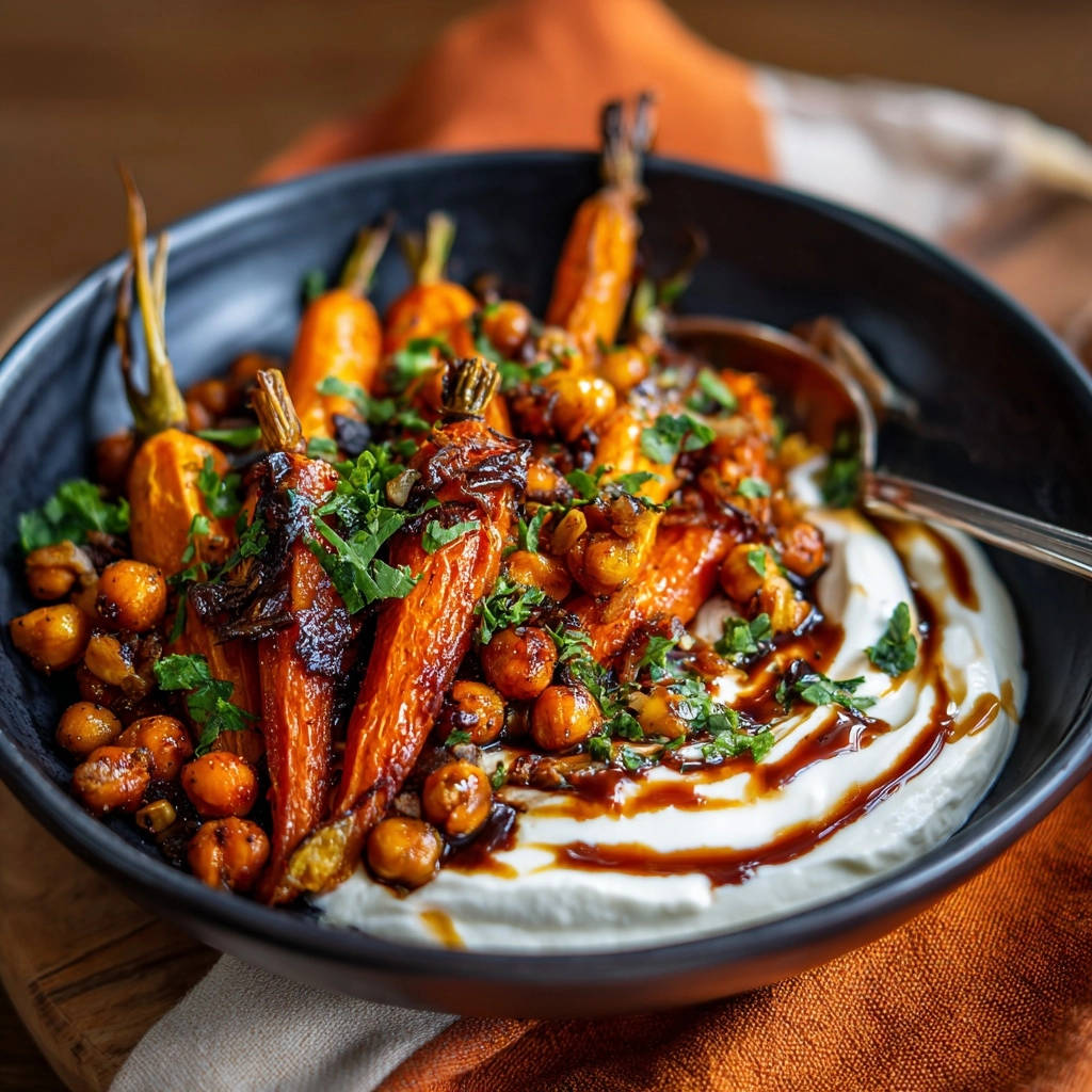 This bowl offers a beautifully balanced flavor profile that excites the palate. The deep sweetness of the caramelized carrots and savory chickpeas is perfectly complemented by the tangy balsamic glaze.