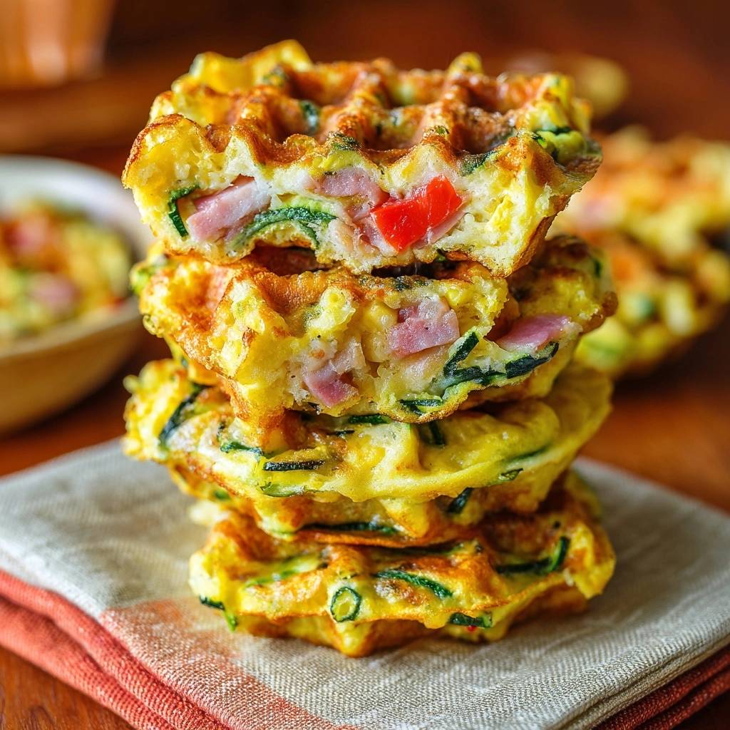 Crispy ham and zucchini waffles with a squeeze-dry method to prevent soggy centers. Perfect for breakfast stacks that stay crunchy.