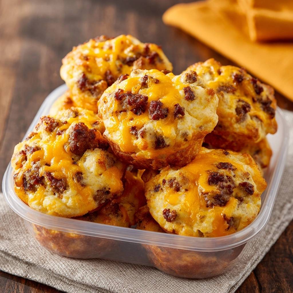 Learn the secret to perfect, non-soggy breakfast muffins with this cheesy sausage recipe featuring a special layering technique for a light and airy texture.