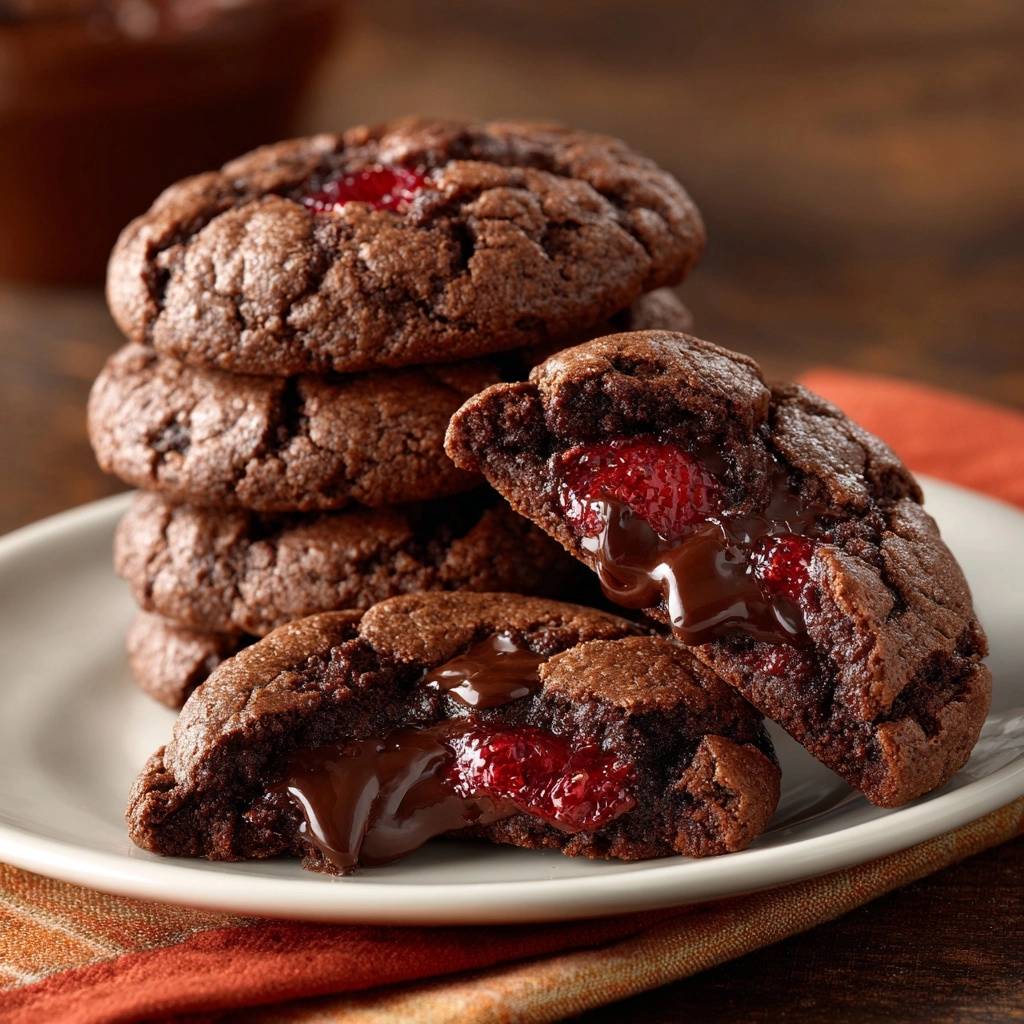 Master the art of stuffed cookies with this fail-proof recipe featuring a frozen chocolate ganache and raspberry core that stays molten without leaking.