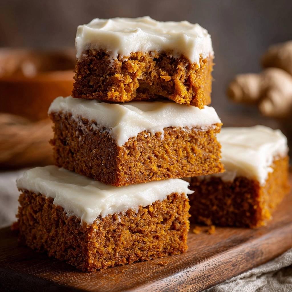 Foolproof Carrot Ginger Cake Bars with moisture-lock technique using oil and squeezed carrots for tender, flavorful bites. Perfect fall snack with cream cheese frosting!