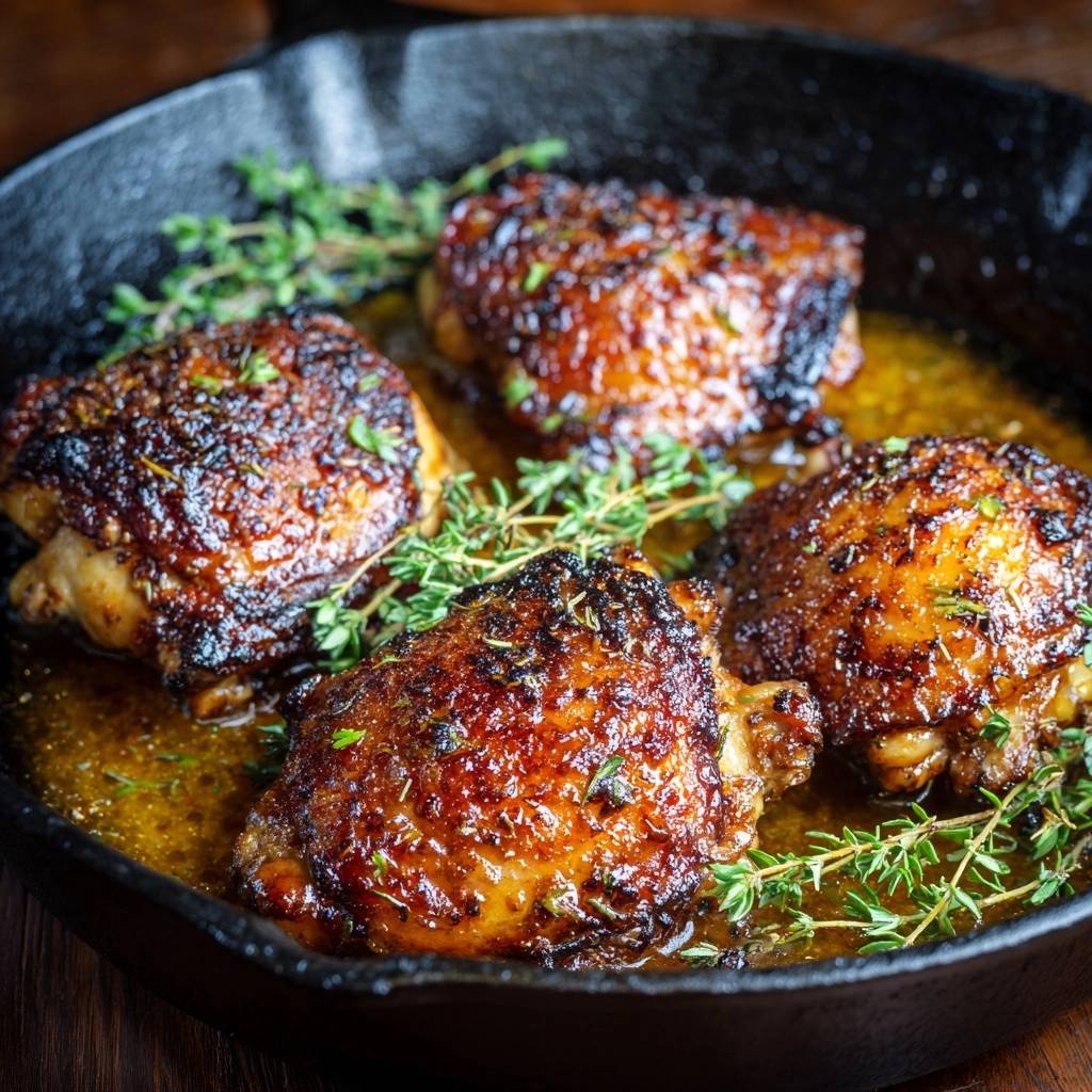 Crispy-skinned chicken thighs seared in cast iron with a honey-thyme glaze. Foolproof method for juicy meat and charred perfection.