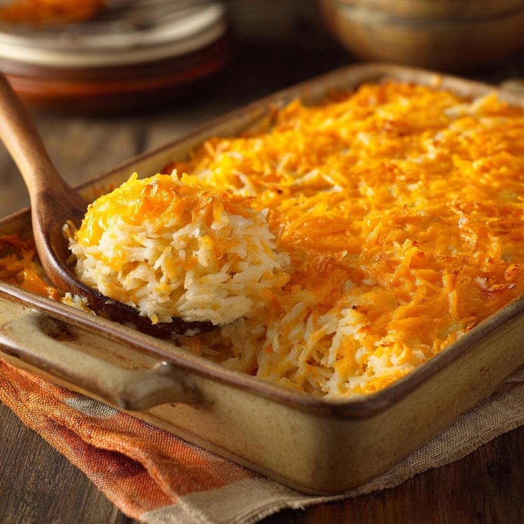 Foolproof cheesy rice casserole with creamy, fluffy rice using a 2:1 liquid-to-rice ratio and covered baking, topped with melted cheddar cheese.