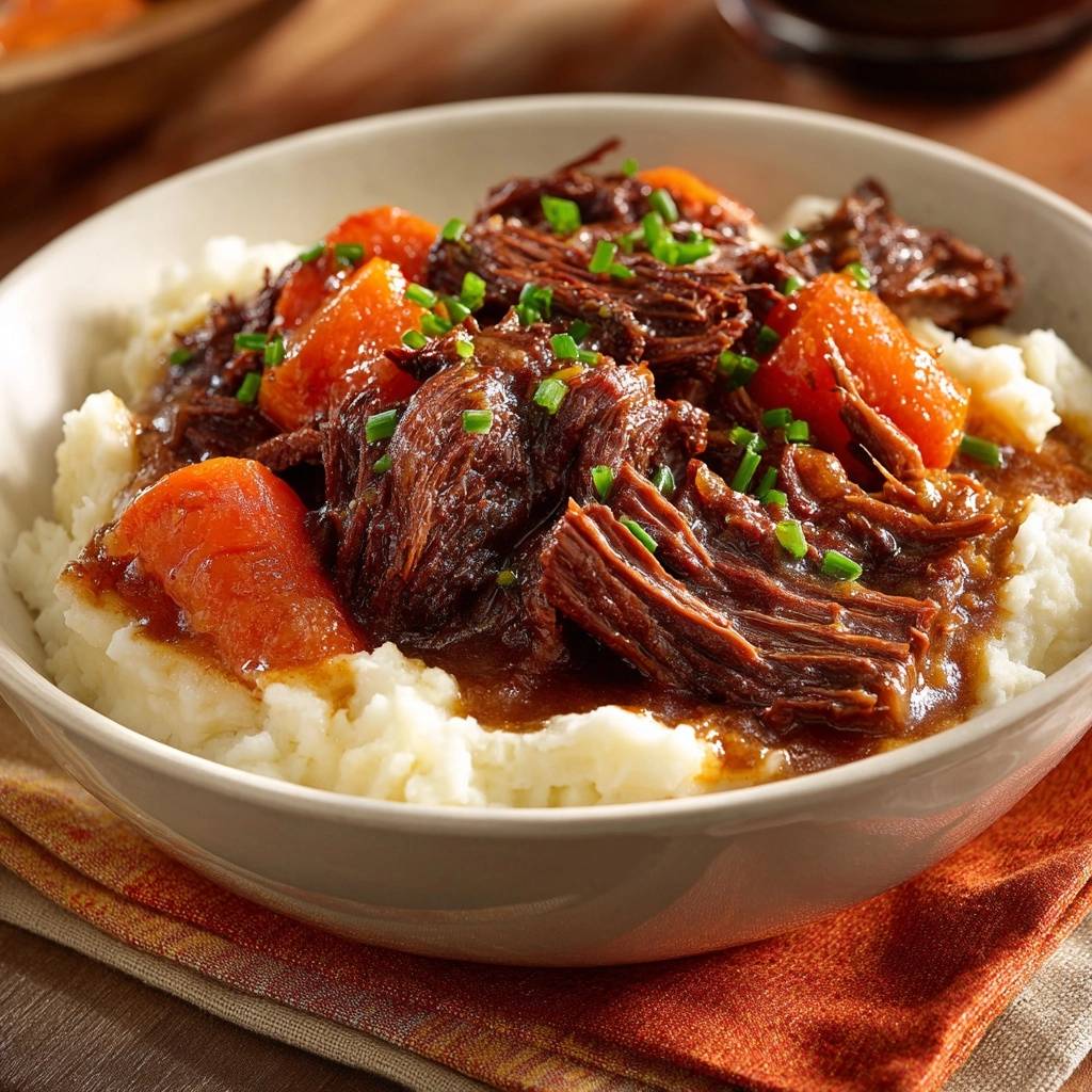 Foolproof pot roast with tender beef, glazed carrots, and creamy mashed potatoes. Sear-and-braise method guarantees fork-tender results every time.