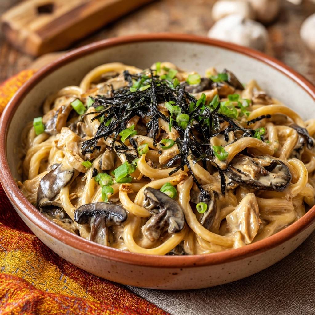 Learn how to make restaurant quality Creamy Mushroom Udon Noodles with a thick, velvety sauce that clings to every strand using a professional emulsion technique.