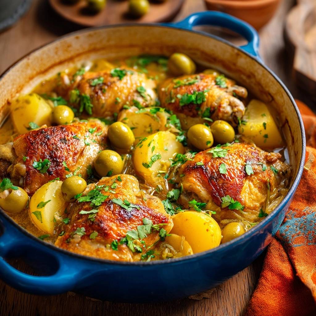 A one-pot chicken and potato braise featuring a specific searing technique to ensure juicy meat and shatteringly crisp skin.