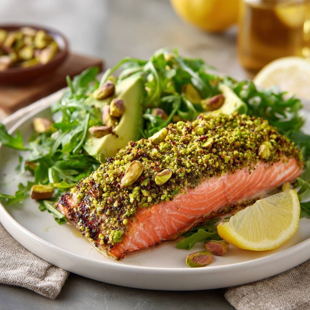 Learn the secret to a perfectly crunchy pistachio crusted salmon. This recipe uses a specific layering technique to prevent a soggy crust while keeping the fish moist and flavorful.
