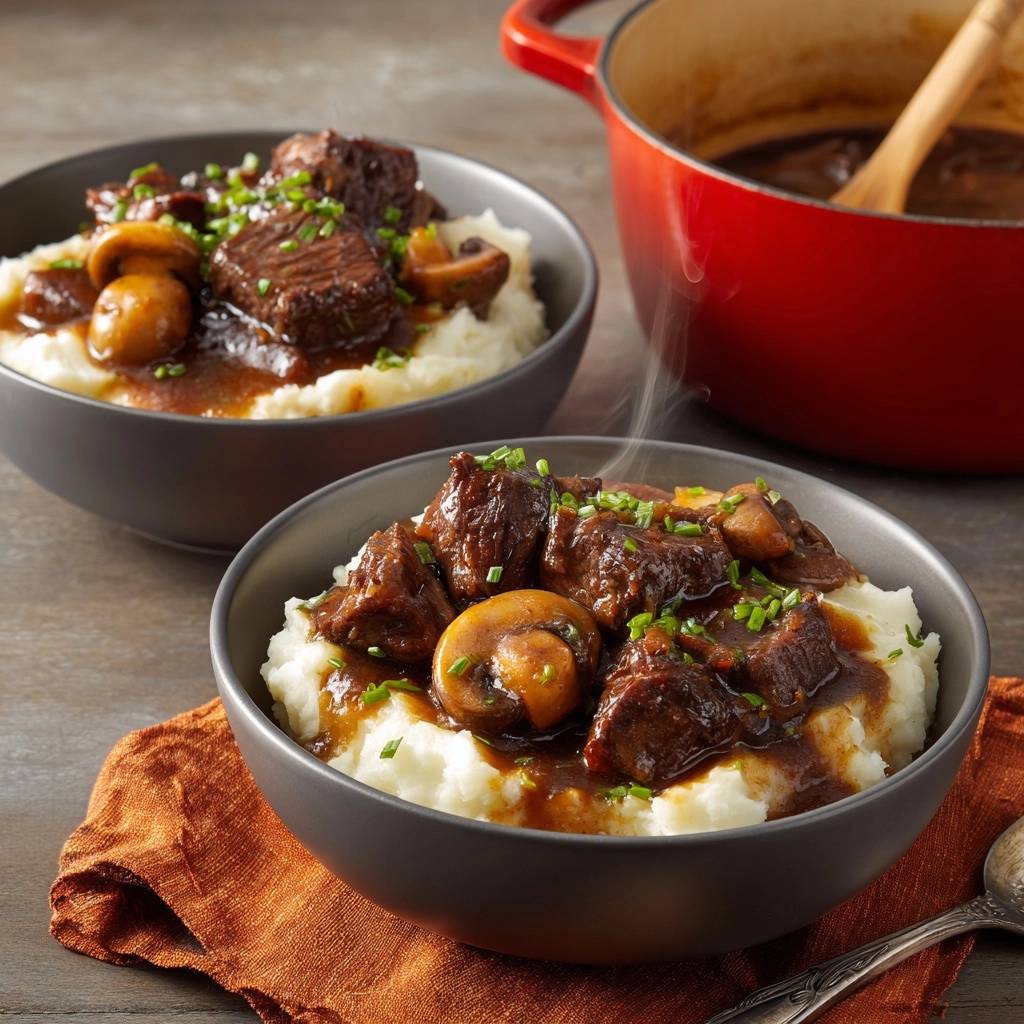 Learn the secret to melt-in-your-mouth beef stew with this low-and-slow braising technique that ensures tender meat and a rich mushroom gravy every time.