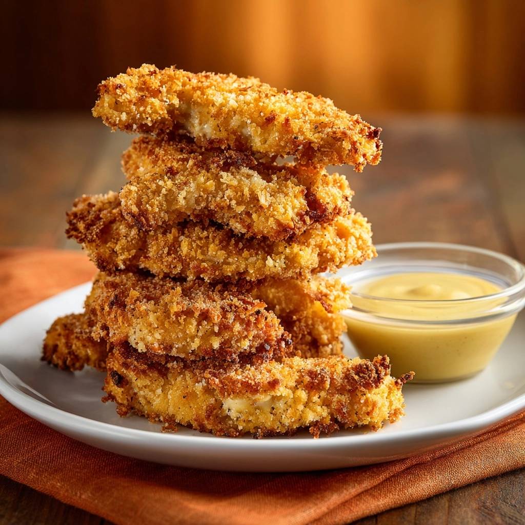 Perfect homemade chicken tenders with a double-dip and chill method for ultra-crispy, cling-tight breading that stays on during frying. Served with honey mustard dip.