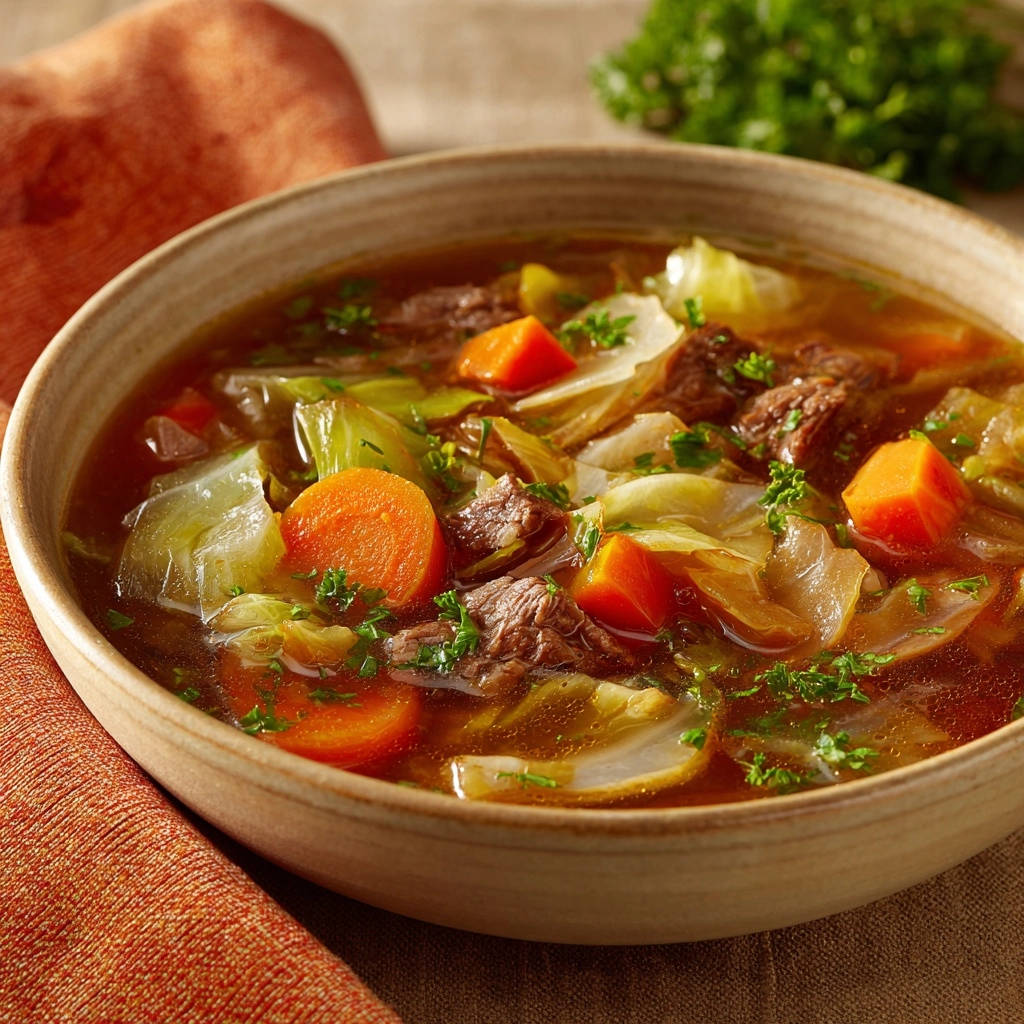 Learn the secret to tender beef in this hearty beef and cabbage soup! A comforting classic, guaranteed succulent every time. Delicious!