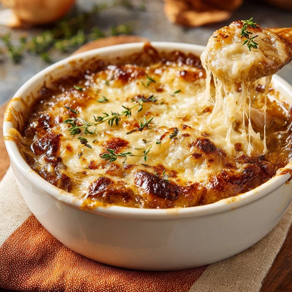 Foolproof French onion soup with perfectly caramelized onions using a low-slow stir method and deglazing to prevent scorching. Rich beef broth, topped with cheesy baguette.