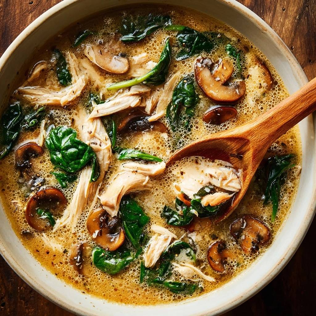 Foolproof one-pot chicken mushroom spinach soup with rich, thick broth. Sauté mushrooms first to evaporate water for concentrated flavor—no more watery soup!