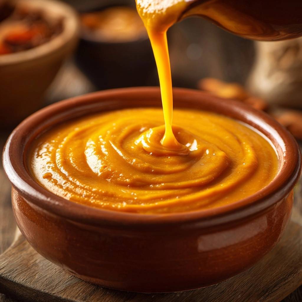 Roasted pumpkin soup that’s thick, creamy, and full of flavor, topped with toasted almonds and dried apricots. No more watery soup!