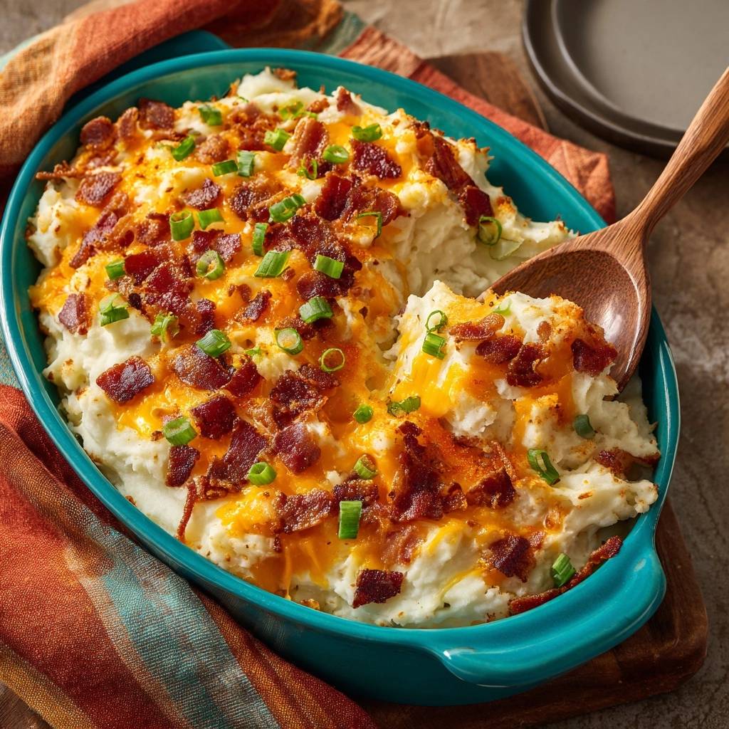 Ultra-creamy mashed potatoes loaded with cheddar cheese, crispy bacon, and green onions. Foolproof hand-mashing technique avoids gluey texture for the perfect side dish.