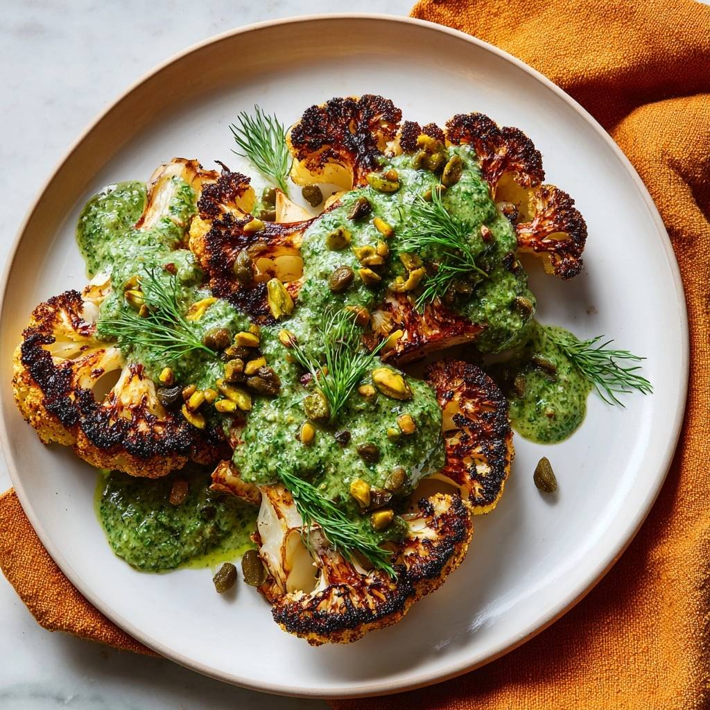 Forget everything you know about mushy, bland cauliflower. When you treat this vegetable like a prime cut of meat, it transforms into something deeply savory with crispy, blackened edges that rival any steakhouse side. The secret lies in high-heat caramelization and a vibrant, crunchy pistachio gremolata that cuts right through the earthy richness of the roast.