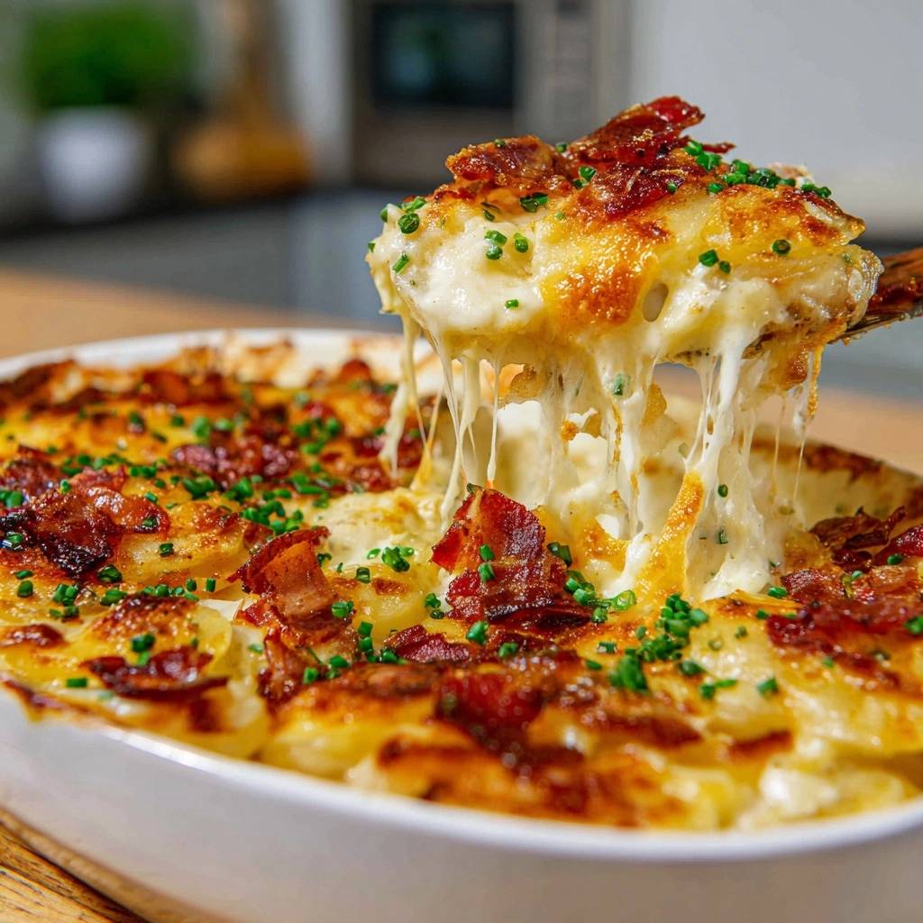 Here’s the expertise booster: after salting, rinse and pat those slices bone-dry. That step ensures the potatoes absorb the cream perfectly, locking in stretchy, golden cheese and smoky bacon crunch. You’ll never go back to soupy versions.