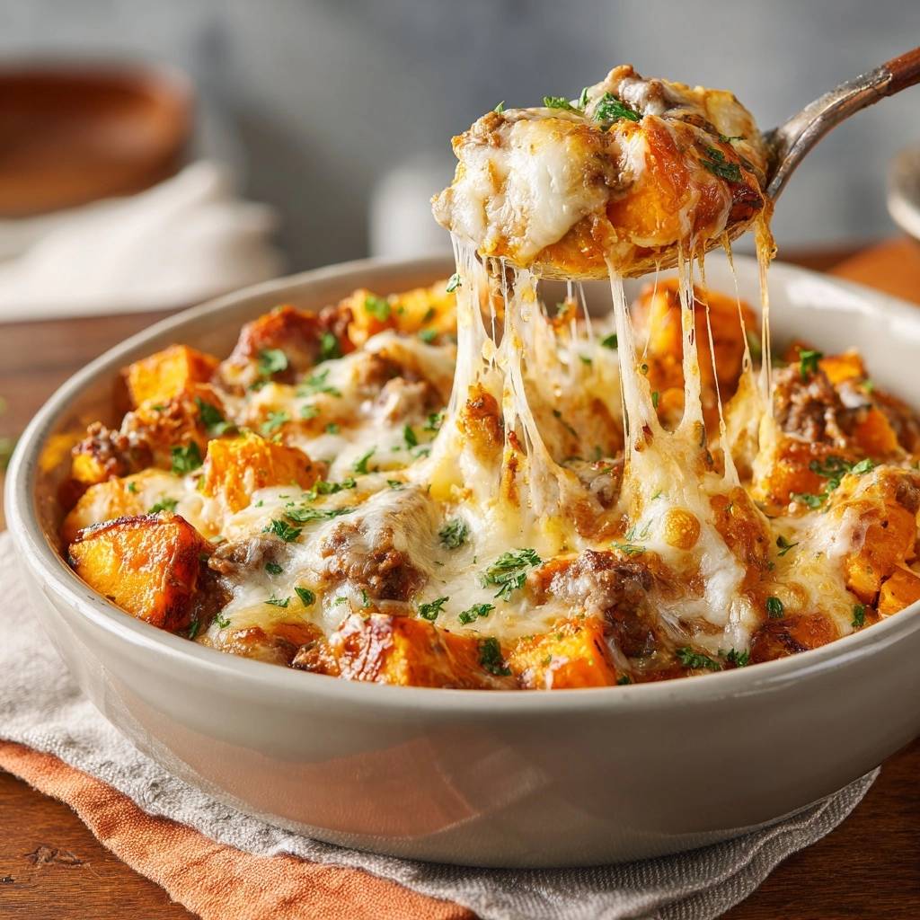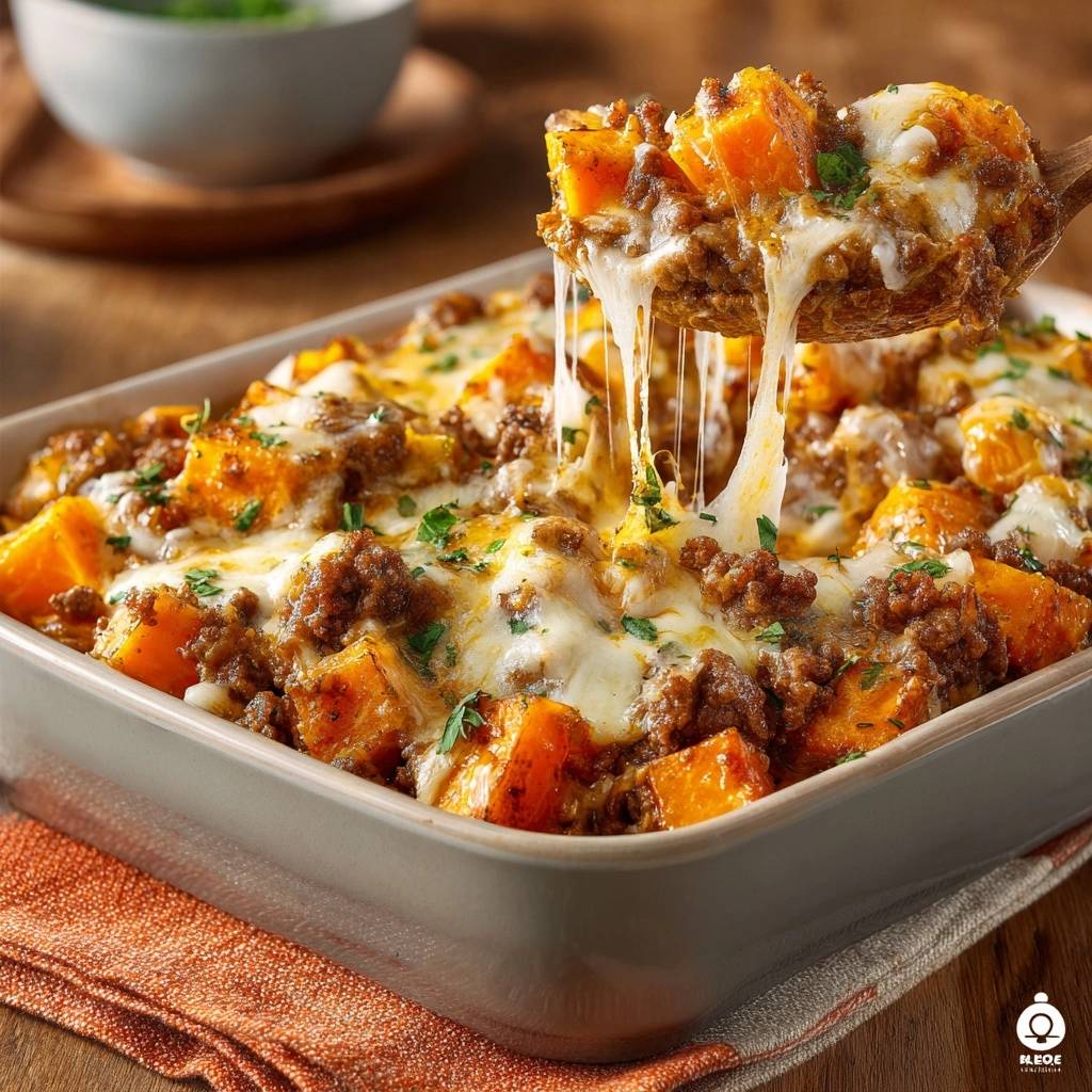 Cheesy Beef Sweet Potato Bake