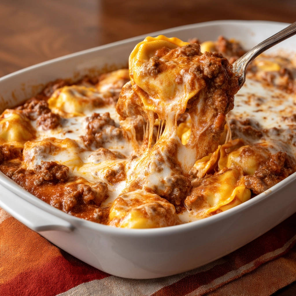 Cheesy Beef Tortellini Bake (Stays Perfectly Saucy)