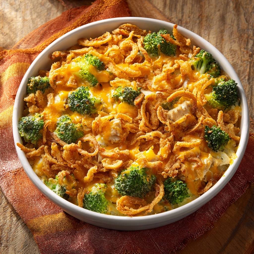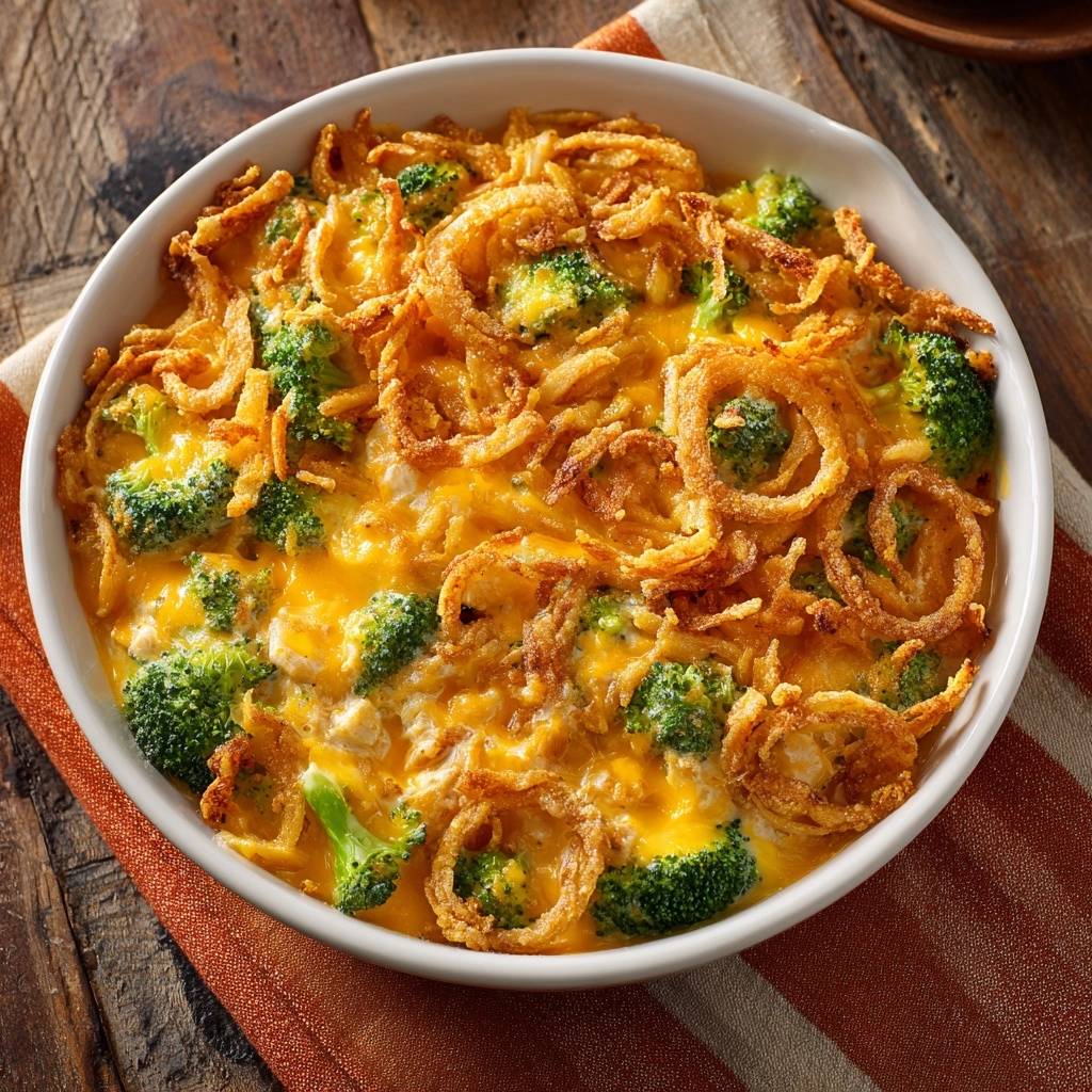 Dash cayenne for kick without overpowering. Crush Ritz crackers as onion alt for buttery crunch. Elevates basic cheesy broccoli casserole easily.
