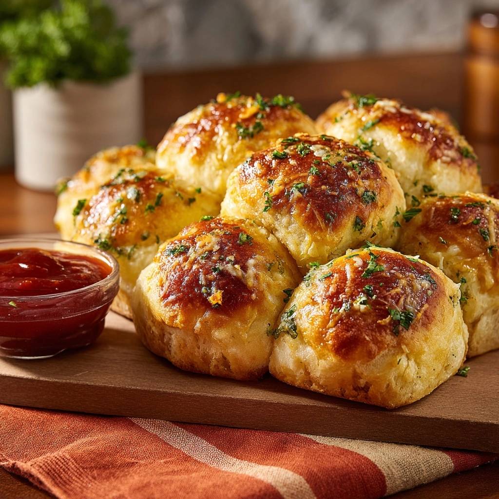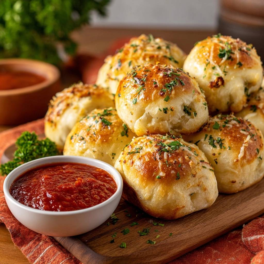 Fresh parsley brings vibrant green flecks and brightness. However, the real star is that garlic butter brushed post-bake. It adds shine and aroma. Ketchup dip cuts the richness with tang.