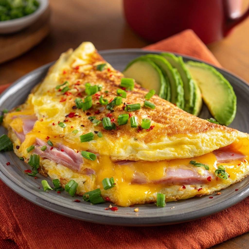 Therefore, you get melty cheddar, savory ham bites, fresh chive punch, and a chili flake kick, all wrapped in creamy eggs. Top it with cool avocado slices for contrast. It takes just 10 minutes, perfect for rushed mornings when takeout tempts you.