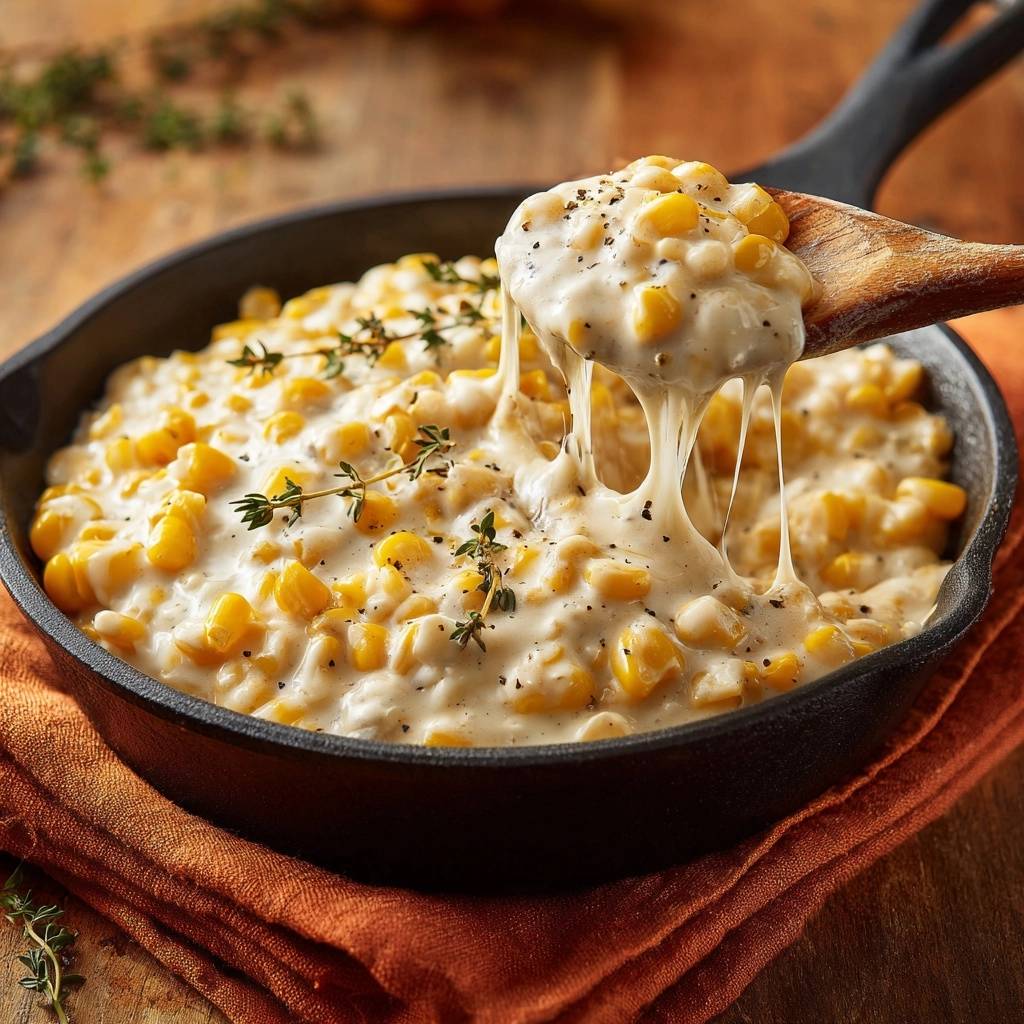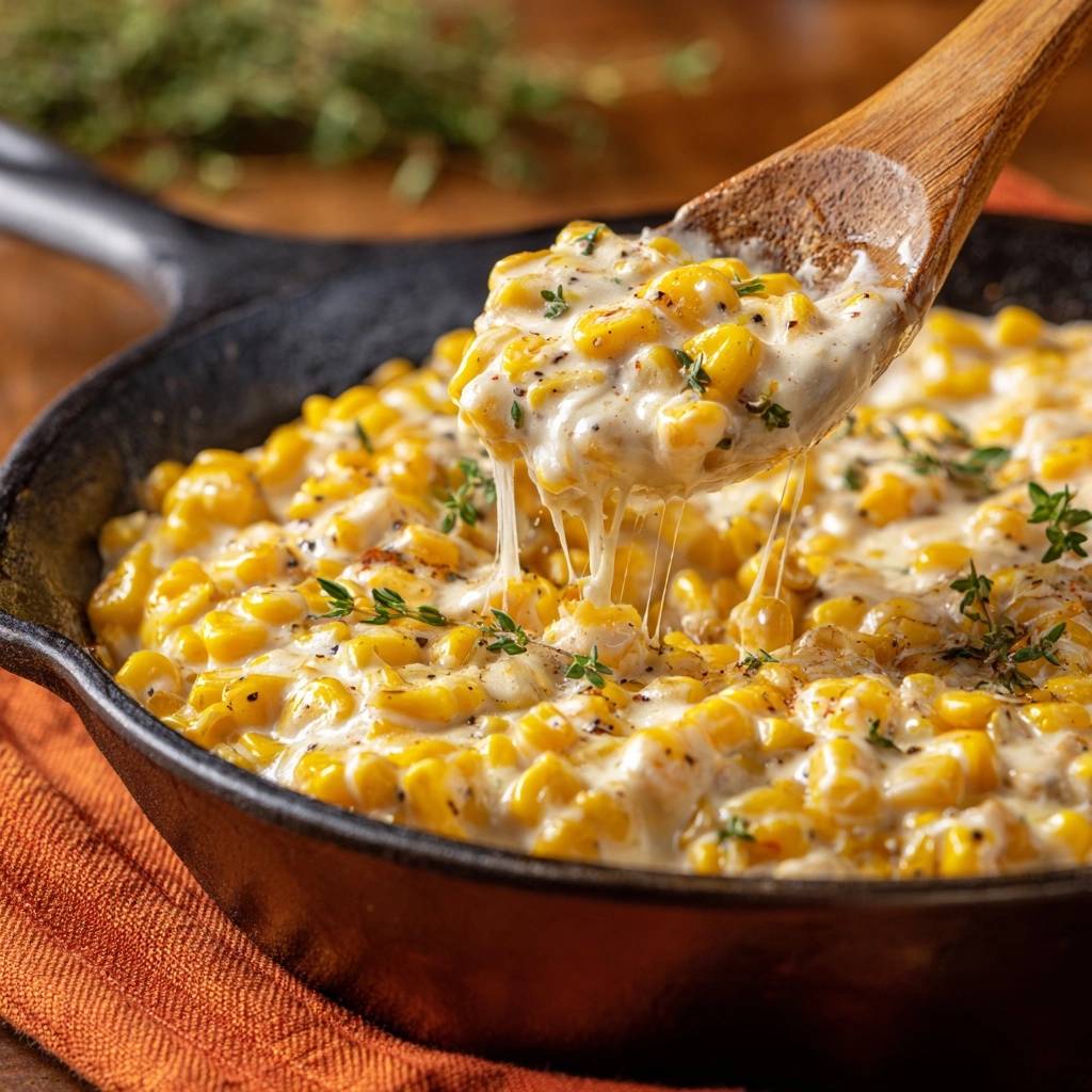 Balance with 1/2 teaspoon each salt and pepper. So, the cheese stretches hot from the skillet, and thyme sprigs garnish for that pro touch. This cheesy skillet creamed corn sings at the end.