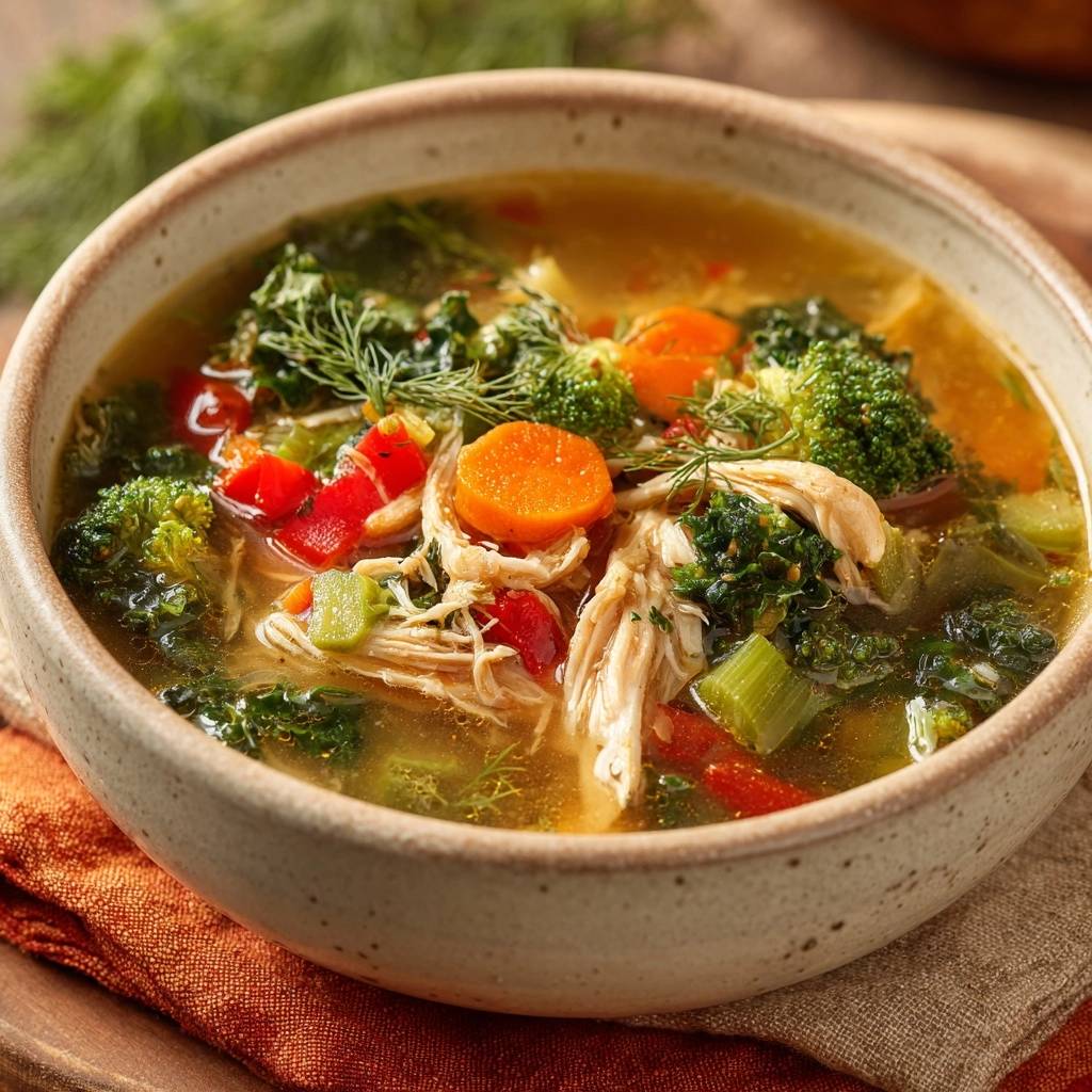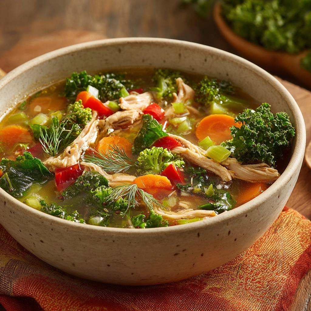 Here’s why it works so well. Heartier veggies like carrots and celery build deep flavor first. Then delicate ones like kale and broccoli join late to stay tender-crisp. In addition, you pack in lean chicken protein, kale’s vitamins, and fiber from colorful veggies for a nourishing bowl that satisfies.