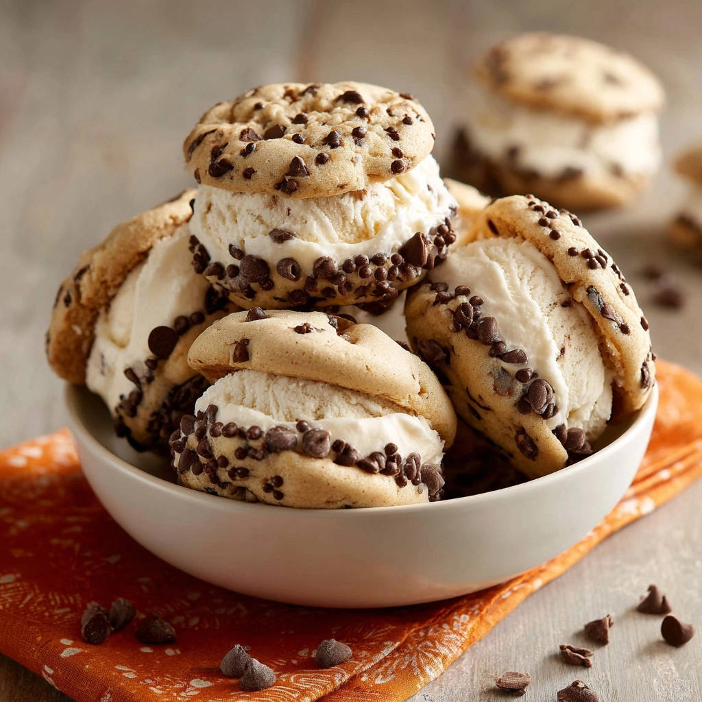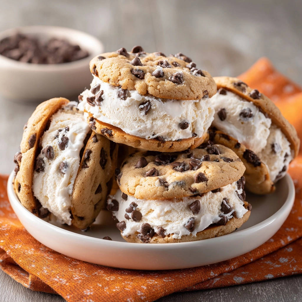These Chocolate Chip Ice Cream Sandwiches are a showstopper all on their own, offering a perfect blend of rich cookie and creamy ice cream.