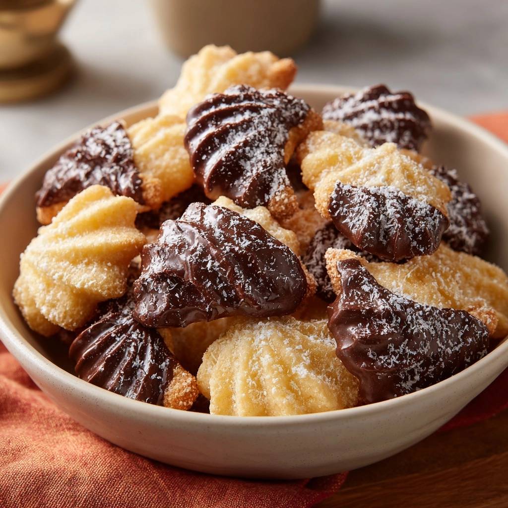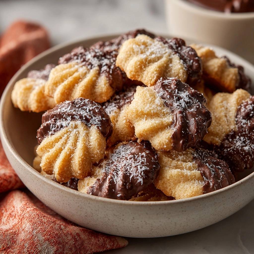These buttery crisp cookies deliver that classic snap, half-dipped in smooth chocolate and rolled in coconut for extra crunch. Therefore, they shine at holidays or as gifts, vanishing fast from any tray.