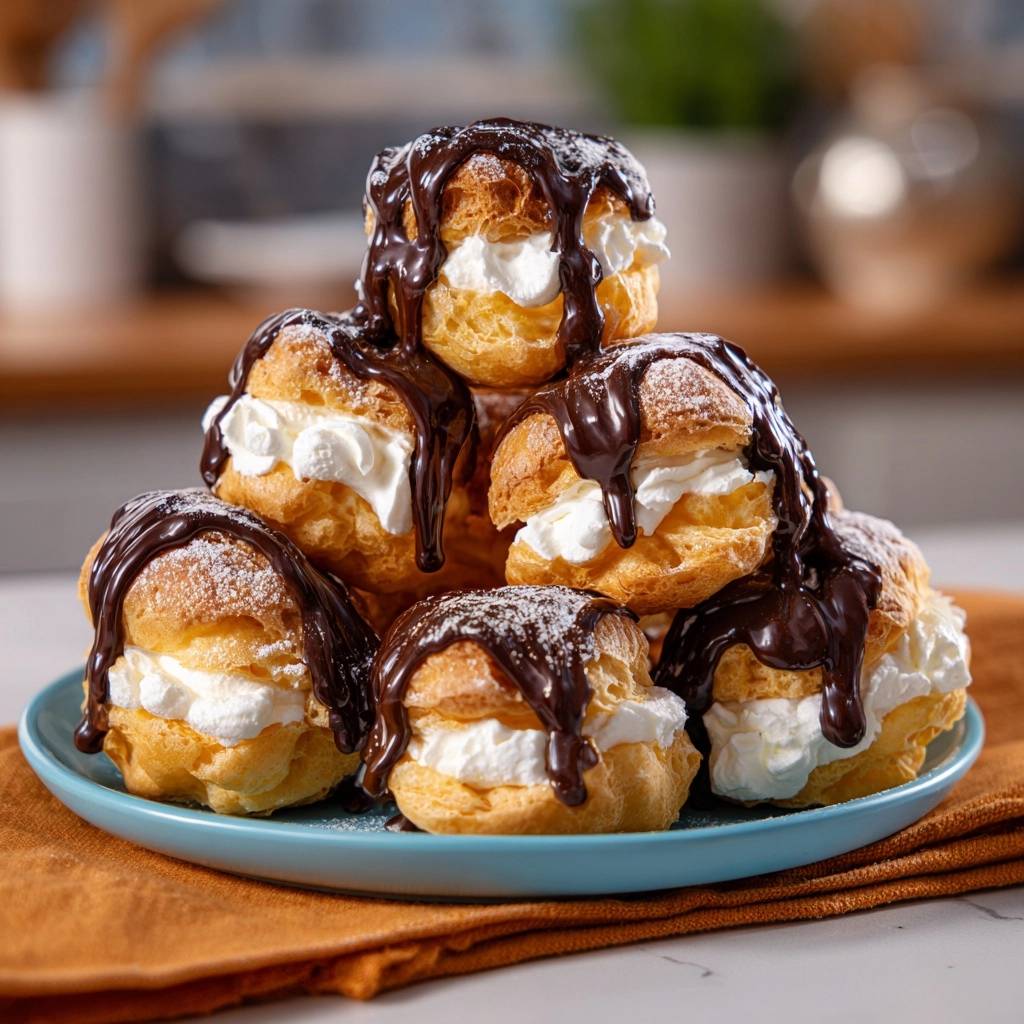 Ever pulled golden choux puffs from the oven, only to watch them deflate into sad pancakes? That heartbreak ends today with chocolate drizzled profiteroles that stay sky-high and hollow. These crisp shells burst with airy whipped cream, then get a glossy chocolate cascade for that irresistible cafe crunch.