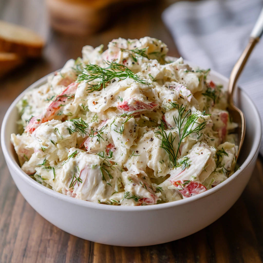 Chill for Flavor Fusion: Once the crab is evenly coated, cover the bowl. This next step is essential for achieving that essential flavor depth: refrigerate the salad for at least 30 minutes. Ideally, give it an hour or even longer if you have the time. This chilling period allows all the beautiful flavors from the dressing – the lemon, dill, mustard, and veggies – to meld and infuse into the crab meat. A freshly mixed salad is good, but a chilled one is great. This resting time is truly part of the “flavor depth hack.”