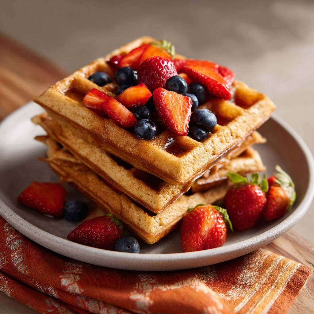 These waffles are fantastic on their own, but they truly shine with the right accompaniments. While the recipe calls for fresh strawberries, fresh blueberries, and classic maple syrup, the possibilities are endless! Here are some ideas: