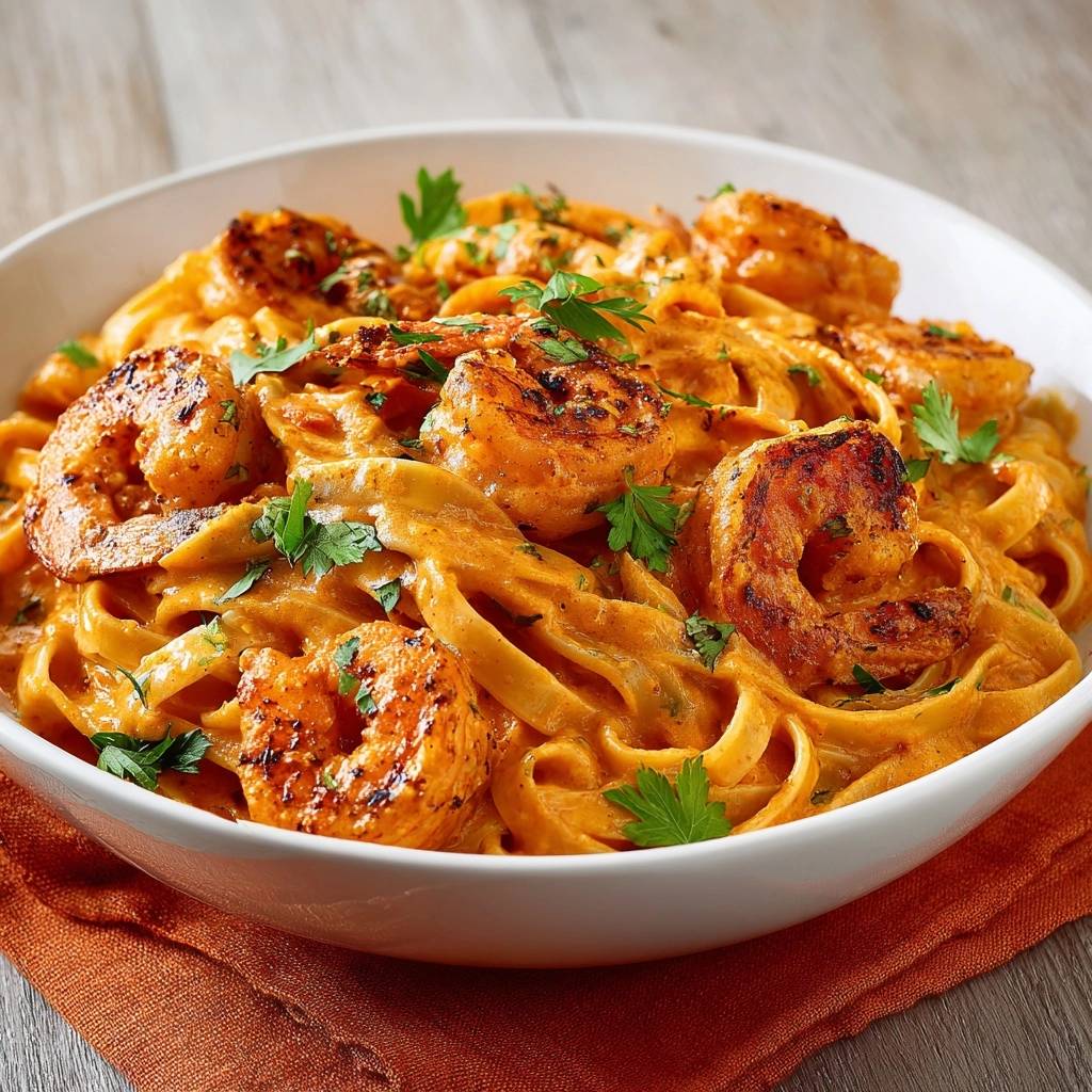 Therefore, you get bold Cajun heat wrapped in a velvety orange cream sauce that clings to every fettuccine strand. The shrimp stay off-heat during sauce-building, so they never toughen up. It’s dinner that feels indulgent but comes together fast.