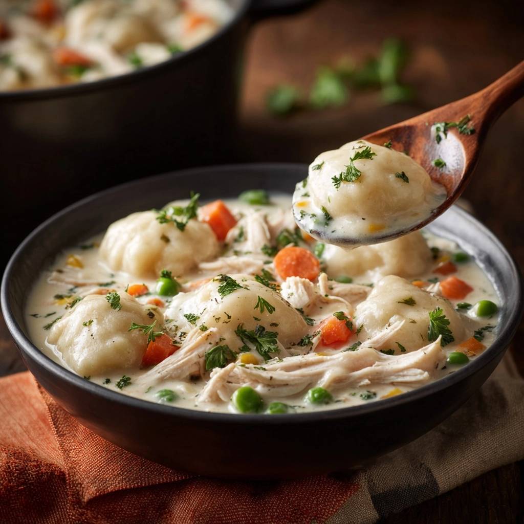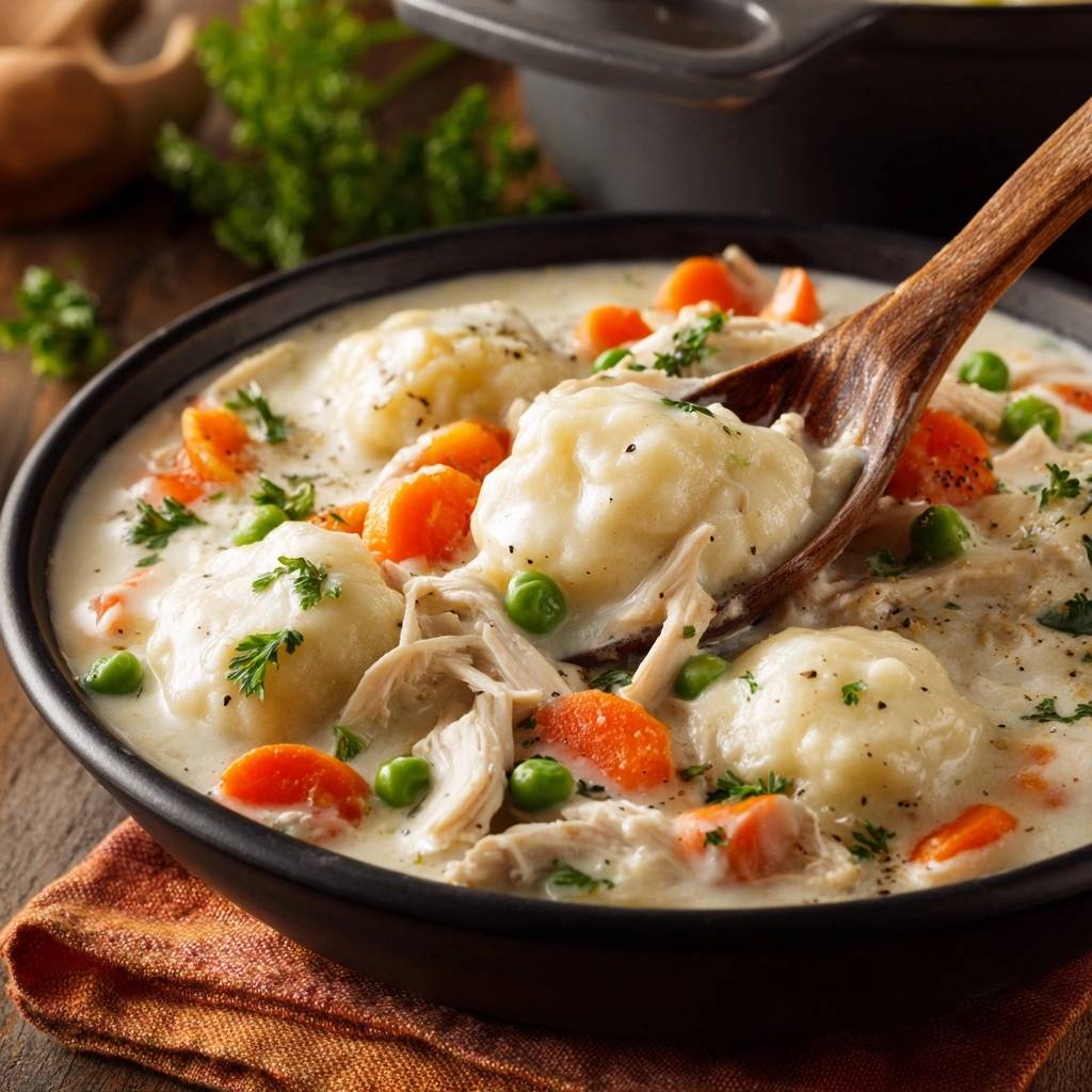 Add fresh thyme or rosemary to the roux for earthy notes. Use oat milk for dairy-free creaminess. A pinch of cayenne brings gentle heat to creamy chicken dumplings.