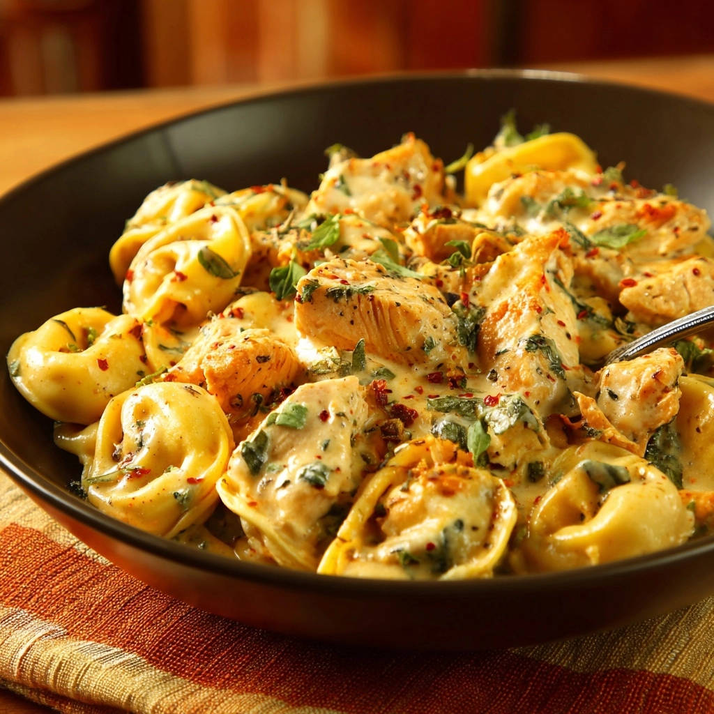 This savory pasta dish combines tender chicken, plump tortellini, and a rich, velvety cream sauce into a family-favorite meal ready in under 40 minutes.