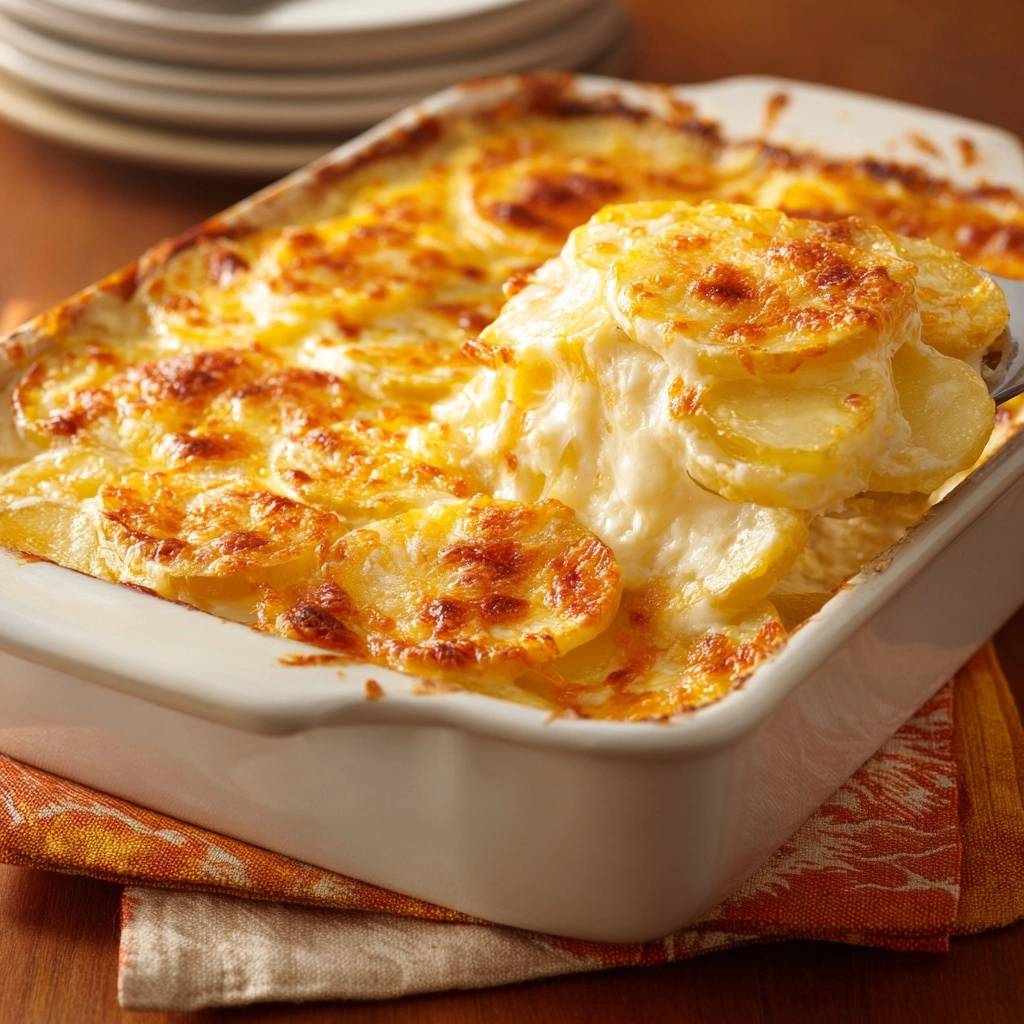 Layer diced ham or leeks between potatoes for heartiness. Stir spinach into sauce for green boost. Low-carb: swap half potatoes for cauliflower florets.