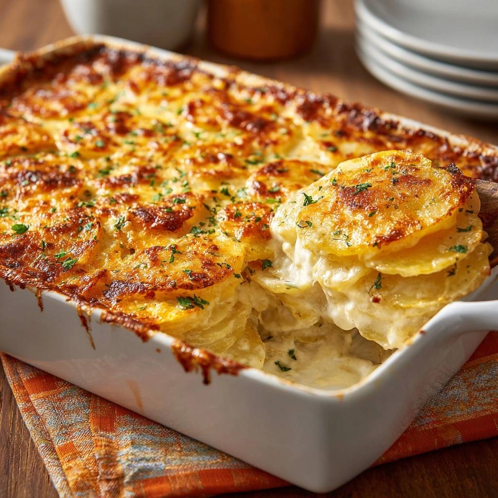 Layering Technique for Even Creamy Potatoes Au Gratin