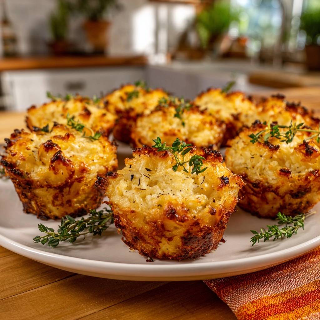 - Cool in tin for 5 minutes, then gently remove with a spoon. Garnish with fresh thyme sprigs. Serve hot for the perfect crunch-to-cheese ratio.