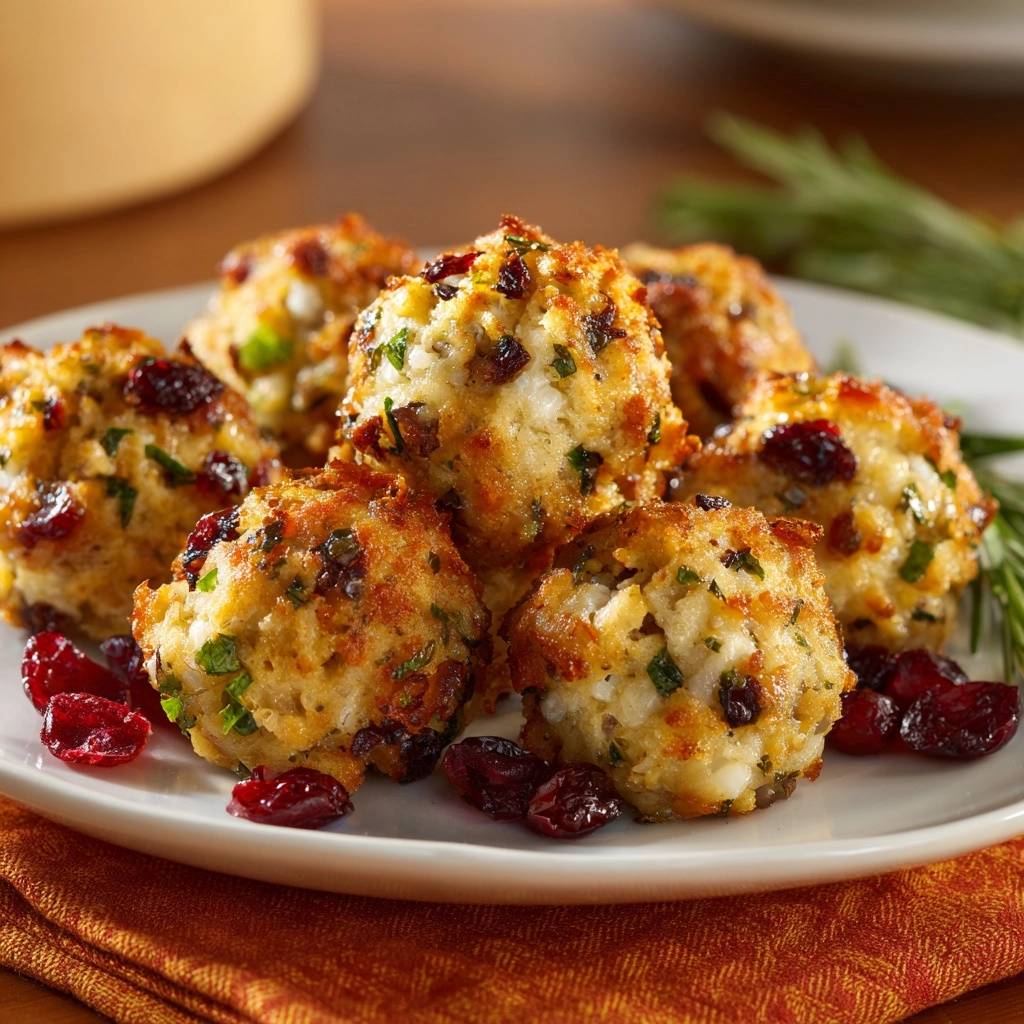Swap cranberries for dried cherries or apricots for deeper sweetness. Thyme or dill replaces herbs for woodsy or anise notes. Add finely chopped pecans or pistachios for nutty crunch inside.
