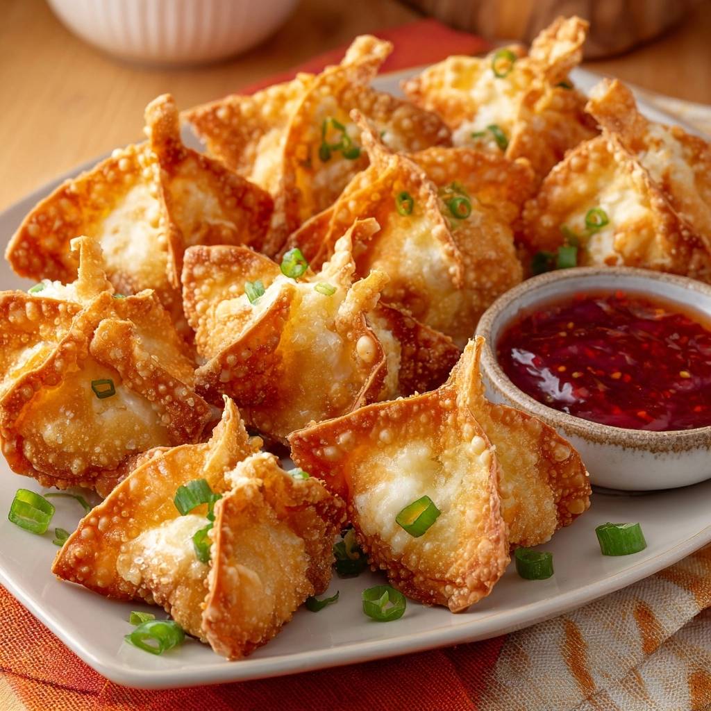 Mix equal parts cream cheese and crab. Pat crab dry first. Fry 30 seconds longer for full crisp. Dips like plum sauce pair perfectly.