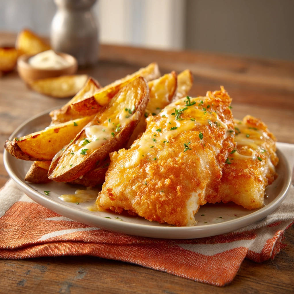 Enjoy Your Homemade Crispy Fried Fish with Cheesy Wedges!