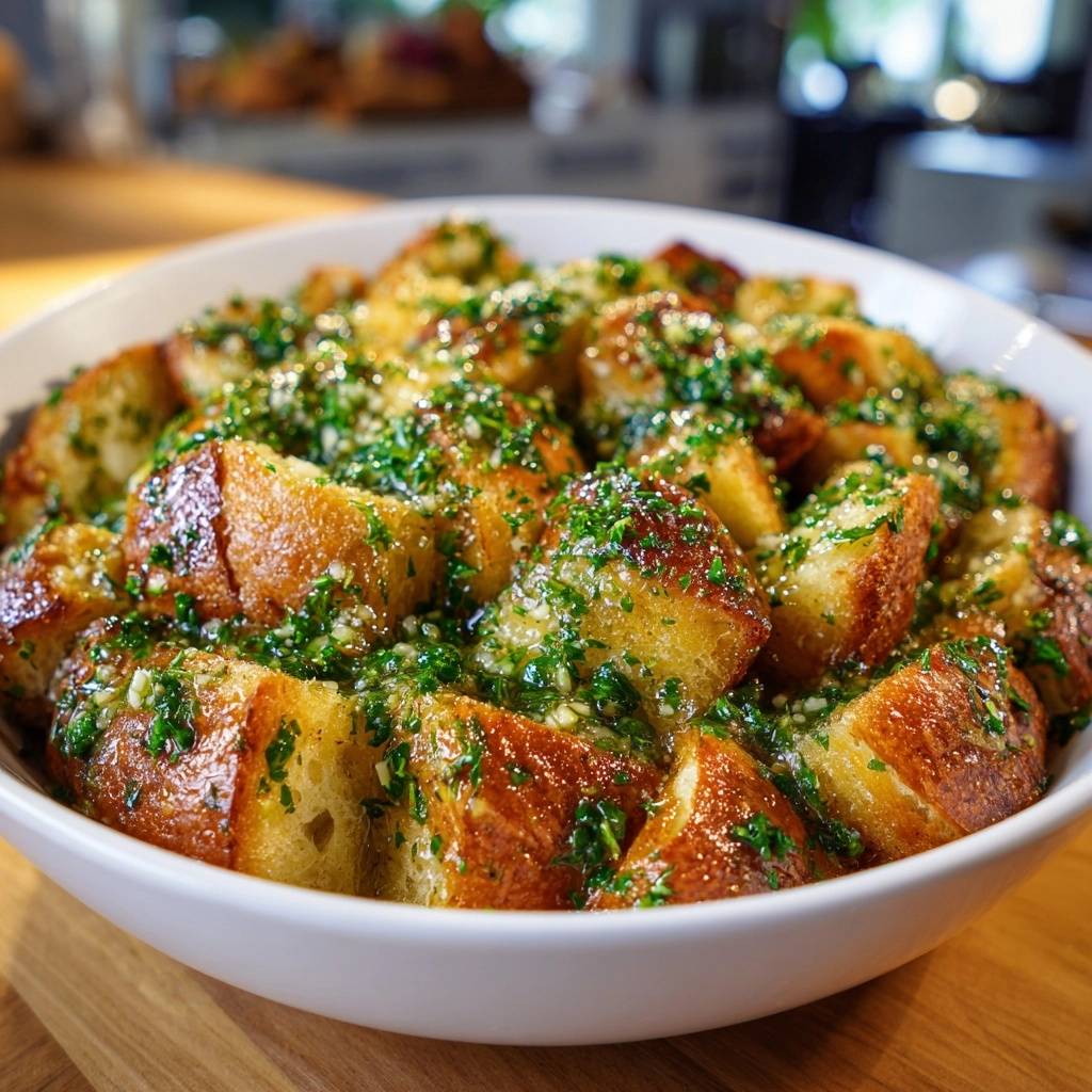 That’s why this recipe changes everything. You take day-old bread and turn it into golden, garlicky perfection that elevates any dish. In addition, the fresh parsley butter infusion adds bright flavor without overwhelming the crunch.
