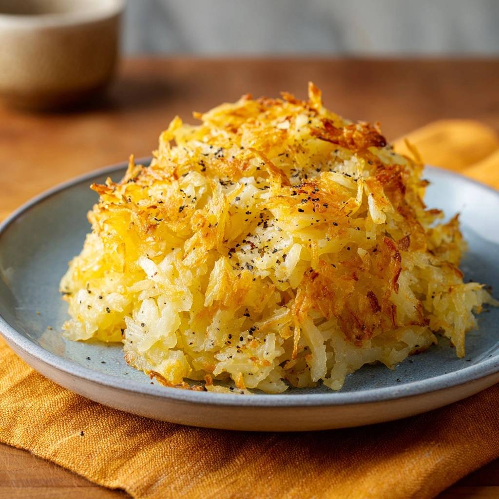 - Add shreds, spreading into an even 1/2-inch thick patty. Press down firmly with a spatula for compact shape. Cook undisturbed 4 to 5 minutes until deep golden and crispy on bottom.