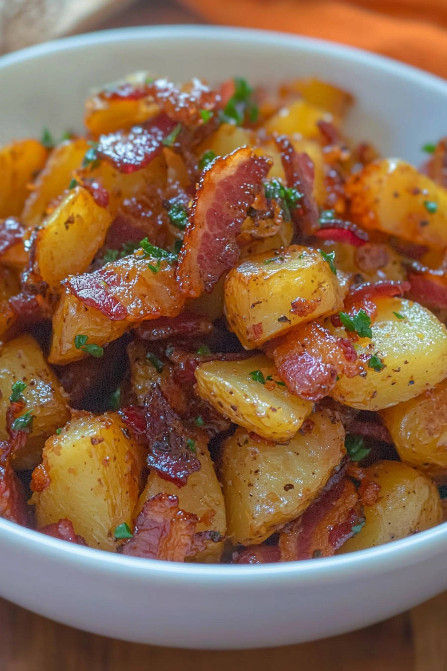 - Vegan: To make this dish vegan, omit the beef bacon and use vegetable oil instead of olive oil. You can also add a sprinkle of smoked salt for a similar smoky flavor. Nutritional yeast can add a cheesy, umami flavor to the potatoes.