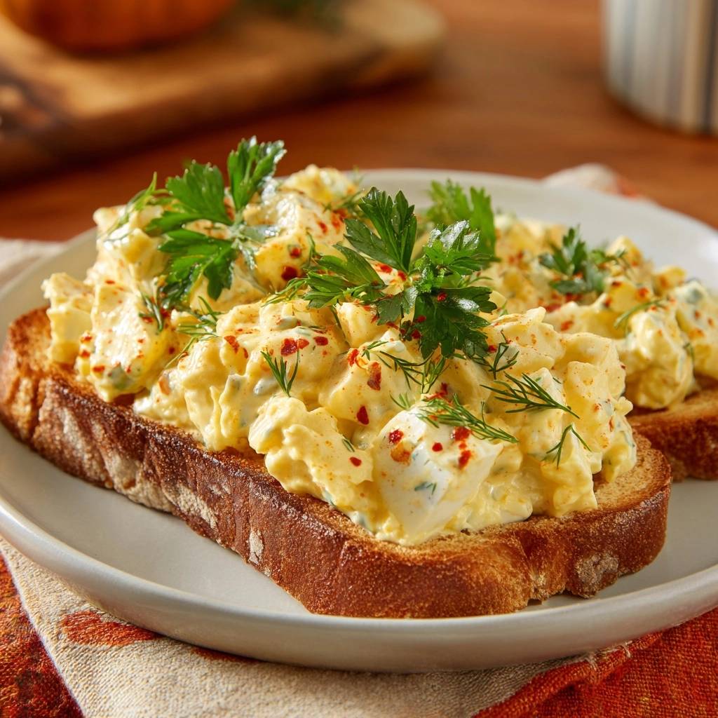 - Chill salad for 10 minutes to let flavors meld. Spoon generously onto toasted bread slices. The toast stays crisp, and your salad stays creamy thanks to those flawless eggs. Serve immediately.