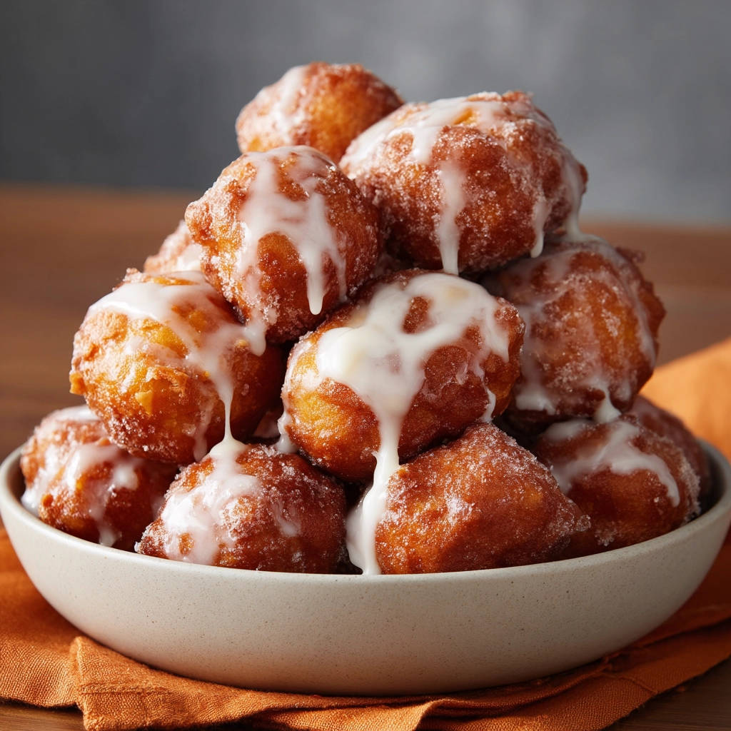 Glaze and Serve Immediately: Now for the best part! You can either dip each warm fried dough bite into the prepared glaze using tongs, or you can place all the warm bites on the wire rack again (or directly onto a serving plate) and generously drizzle the glaze over the entire pile. The warmth of the dough helps the glaze set slightly. Serve these wonderful sweet puff bites immediately while they are warm and at their peak fluffiness!