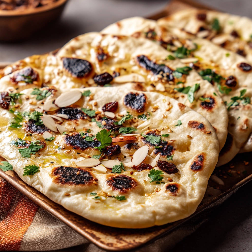 - Optional toppings: melted butter or ghee, minced garlic, chopped cilantro, sliced almonds, raisins, sesame seeds