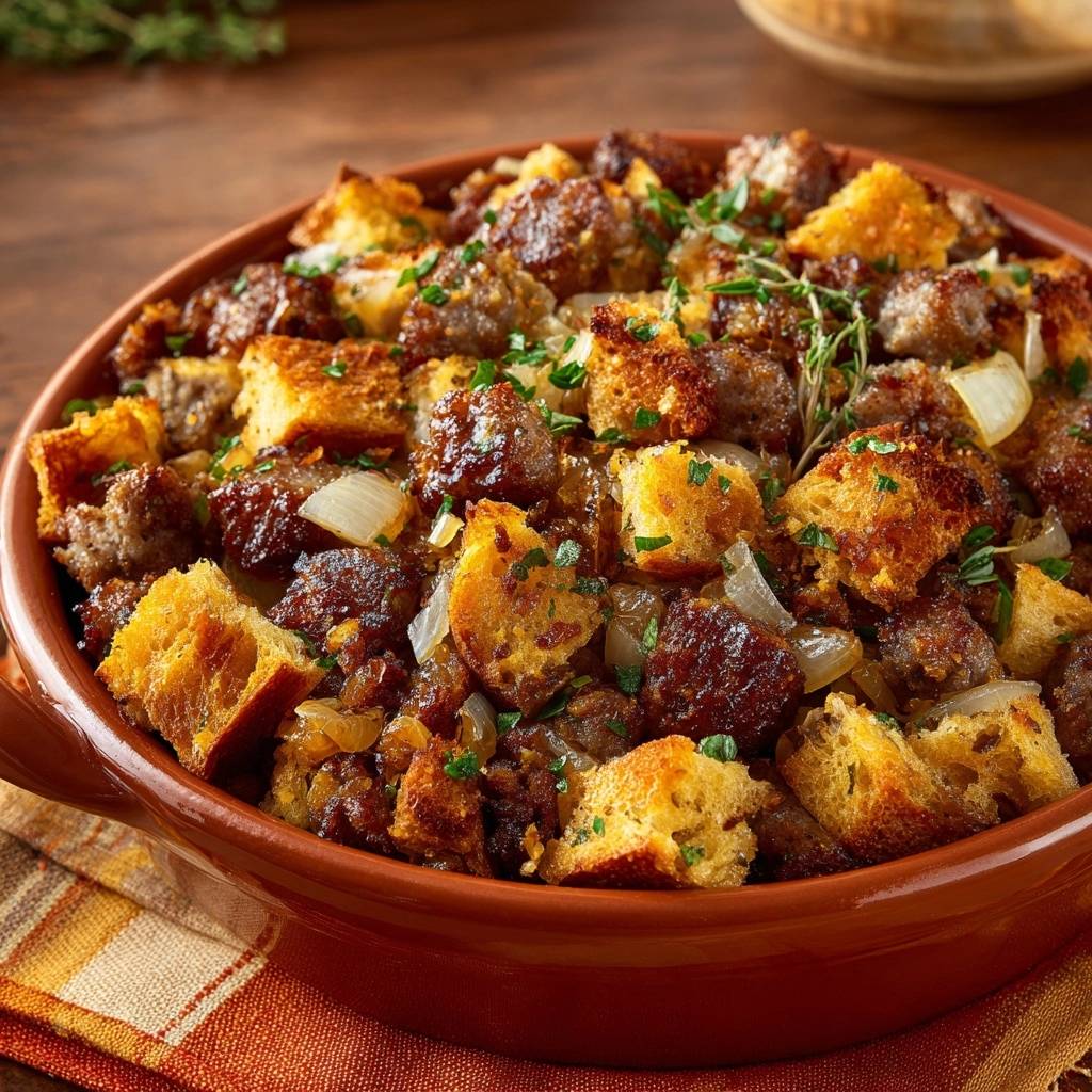 Therefore, it’s perfect for holidays when you want stuffing vibes without the mess, or busy weeknights craving comfort. In addition, pearl onions caramelize into sweet bursts, thyme adds earthy punch, and beef broth ties it with savory depth. You’ll get 6-8 servings, 20 minutes prep, 45 minutes total, around 450 calories per serving.